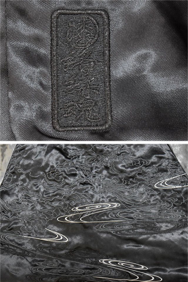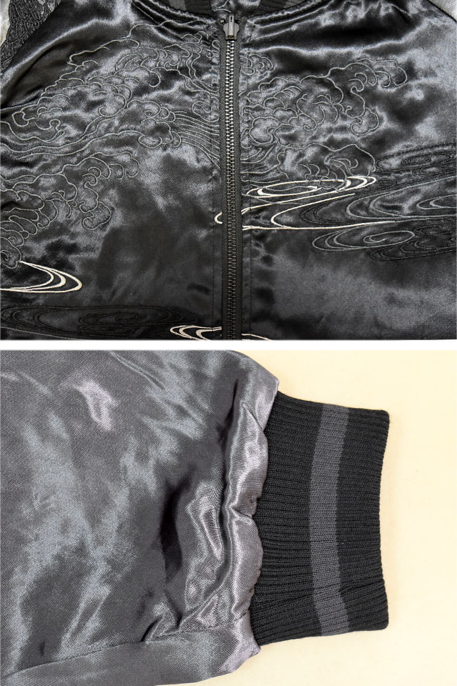 表面はしっかり柄の入ったスカジャンですが、対象的に裏面はシンプルに仕上げ、メリハリを付けました。
