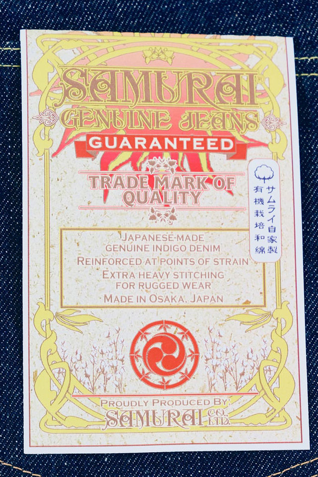 ラベルはサムライジーンズ初期のデザインをベースとし、フラッシャーデザインもビンテージの雰囲気で仕上げました。